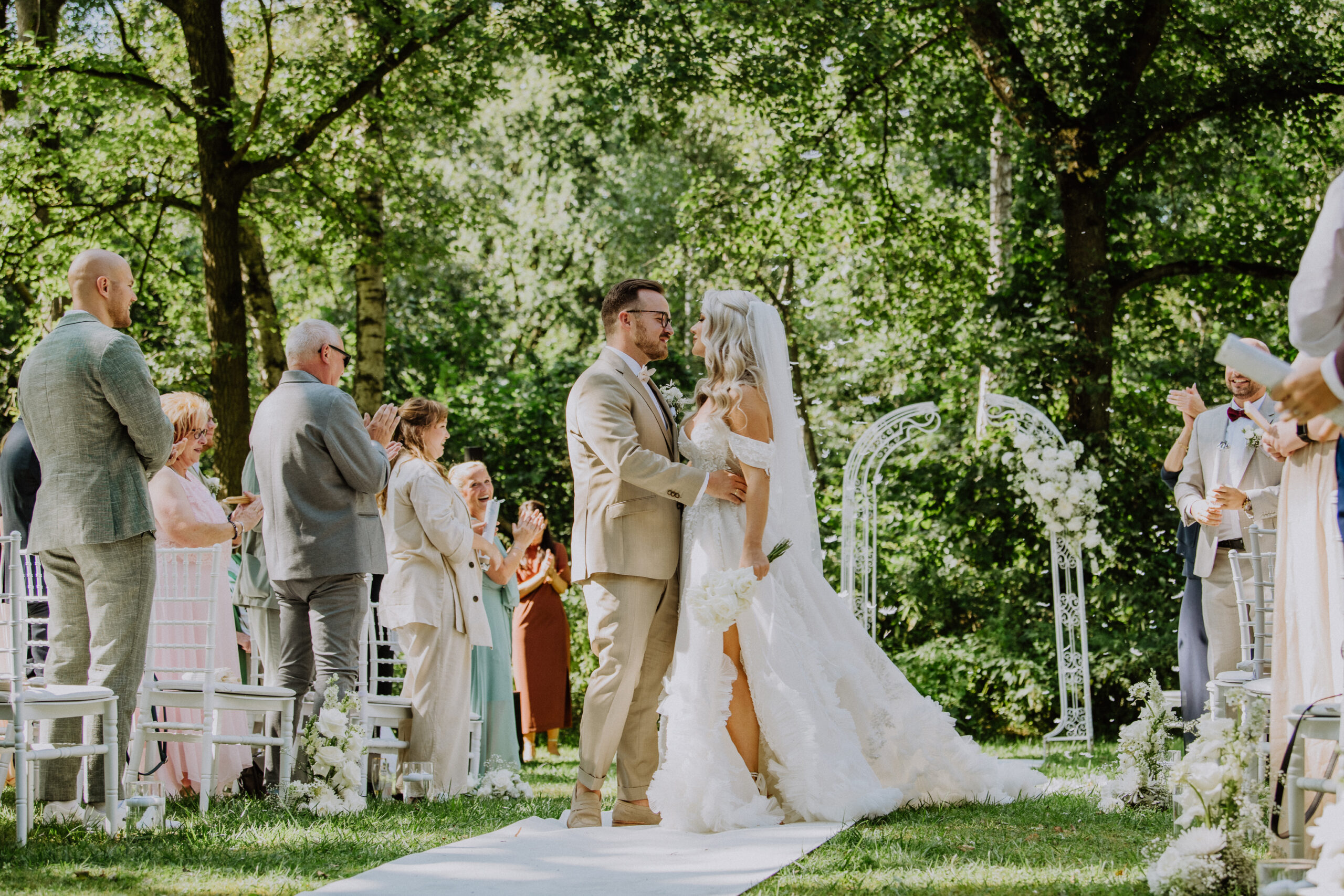 Besonders schön: die Freudentränen beim Eheversprechen und das Lachen der Gäste beim Sektempfang unter freiem Himmel.